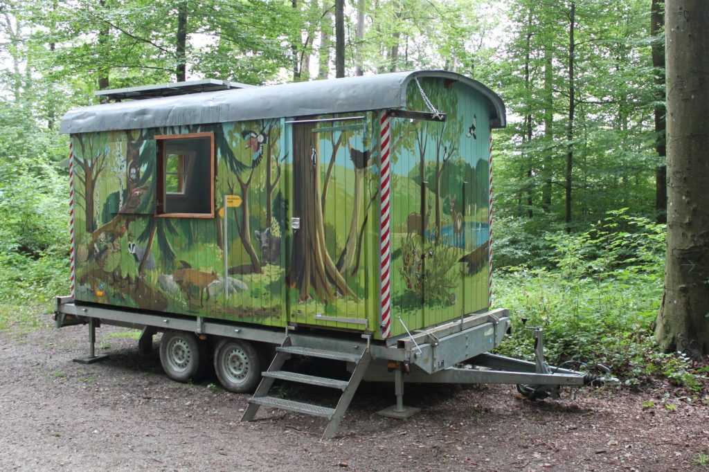 Der farbenfrohe Naturdetektiv-Wagen bietet spannende Forschungs-möglichkeiten für junge und junggebliebene Naturdetektive. Er bringt Mikroskope, Spiele, Naturfunde und eine kleine Bibliothek – alles was es braucht, um heimische Lebensräume zu erkunden.